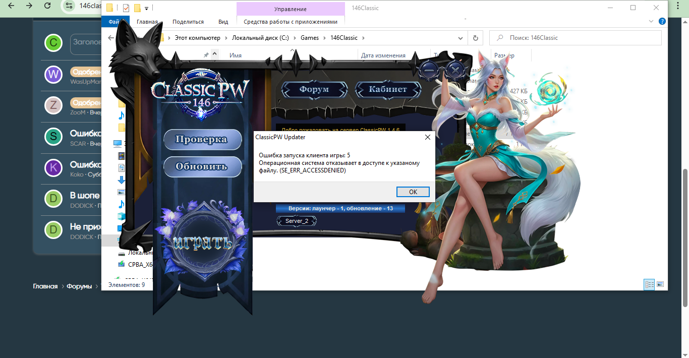 Одобрено Ошибка в лаунчере